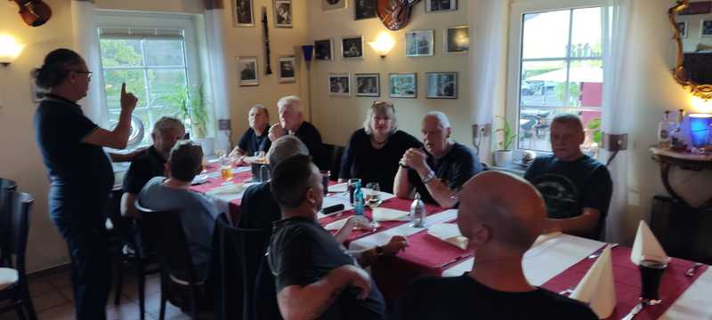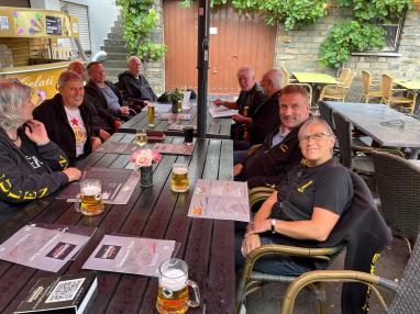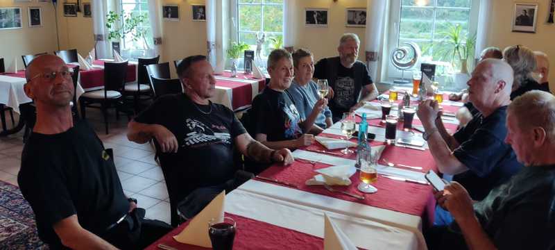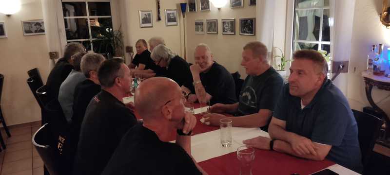 Sammeln und erfrischt zur Blauen Traube. Wie bestellt? Nö, also kurzum den kleinen Saal für uns hergerichtet. Bei leckerem Schmaus und Trank ging ein schönes Wochenende zu Ende. Zum Abschied, mit einem Ständchen auf der Gitarre, bedankte sich der Inhaber für unseren Besuch.