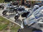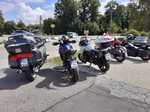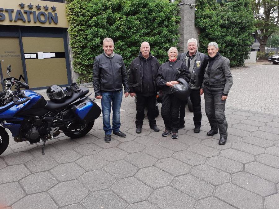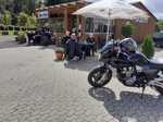 Donnerstag, los geht's und die erste Gruppe macht sich auf den Weg. Erwin mit Sozia Gisela testet seine Harley für die erste längere Strecke.