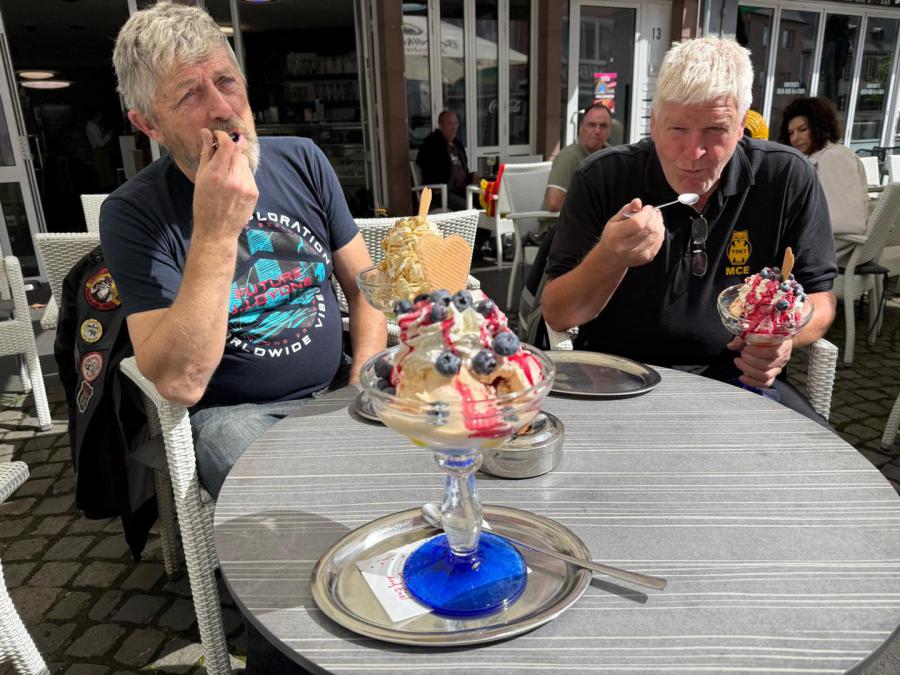 Freitag, los, auf die Böcke und Touren und Kurven. Dafür sind wir hier. Kleine Pausen für rauchen oder Eis schlemmen dürfen gerne sein.