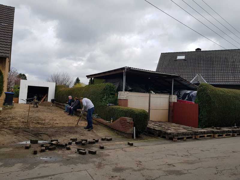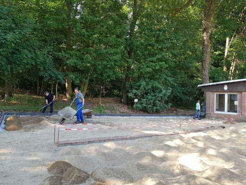Jetzt musste mit grobem Werkzeug die alte Auffahrt aufgenommen und für die Feinarbeit (Unterbau) vorbereitet werden. Da konnten wir auch außerhalb unseres Clubs freundliche Unterstützung finden. Über den weiteren Vorgang werden noch Berichte und Bilder folgen.