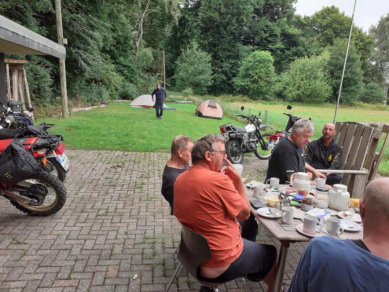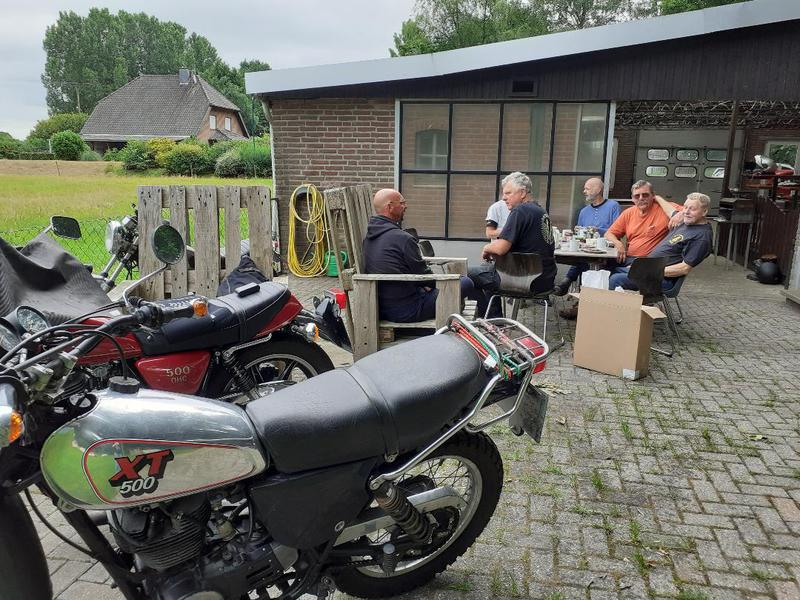 Biker mit Yamaha Oldie Bikes aus früheren Zeiten haben den Weg zum Eulenhorst gefunden und den alten Kumpel Erwin und sein Gefolge besucht. Kurzum ein Frühstück für den nächsten Morgen organisiert und auf alte Zeiten angestoßen. Mit so manchem Schwank oder Benzingesprächen hatten alle echt Spaß.